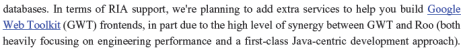 En Spring ROO están trabajando en integrar con otros RIAs, principalmente GWT: