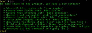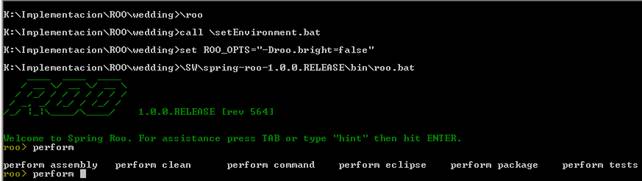 Todos los comandos de ROO se lanzan desde una consola, que ofrece ayuda dinámica e inteligente:
