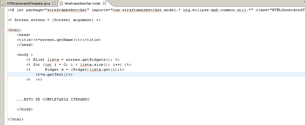 Generando código con JET a partir de un modelo WireframeSketcher: