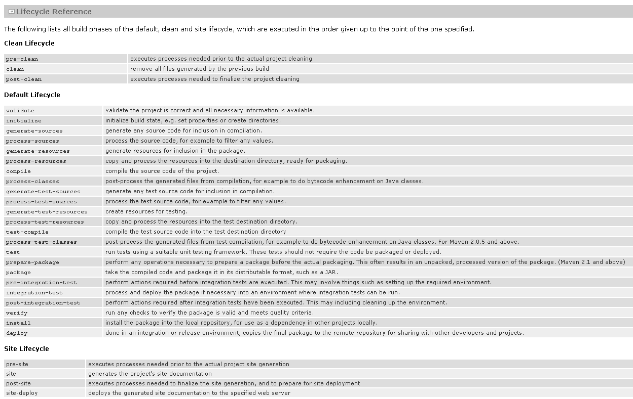 CICLO DE VIDA: (http://maven.apache.org/guides/introduction/introduction-to-the-lifecycle.html)