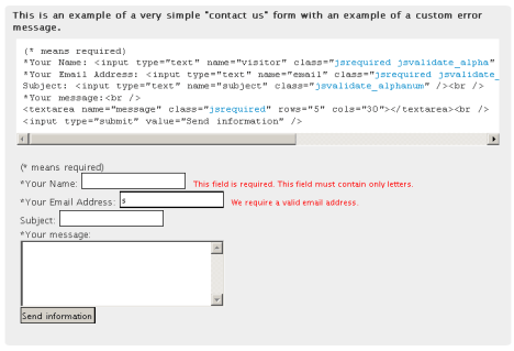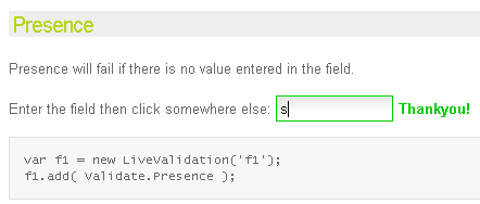 4. LiveValidation: con esta utilizaríamos nuestro propio tag para validaciones y no el class, por ejemplo <input type validation=”Presence”>. Evidentemente requiere más curro.