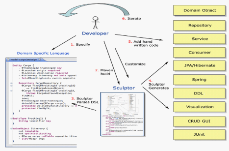 Sculptor es una herramienta de modelado en la que en lugar de representaciones gráficas como UML usa una DSL textual.