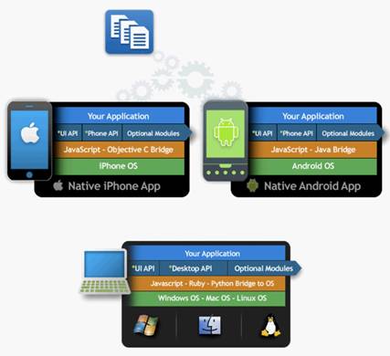 Titanium Mobile Toolkit soporta Android e IPhone y Titanium Desktop PC, Mac y Linux.