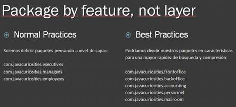 xxx.yyy.entity.<funcionalidad> o xxx.yyy.servicios.<funcionalidad> podría poner xxx.yyy.<funcionalidad>.entity o xxx.yyy.<funcionalidad>.servicios