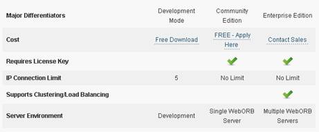 Tiene 3 tipos de licencias, la de Desarrollo, de Comunidad y la Enterprise (esta necesaria para balanceo o clustering):