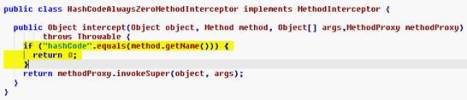 Donde mi Interceptor sobreescribe el hashCode y devuelve un 0: