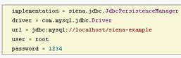 – Extensible. La implementación actual utiliza JDBC. La funcionalidad principal de Siena se basa en interfaces que pueden ser implementadas utilizando otros mecanismos de persistencia.