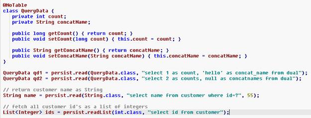 Persist si eres capaz de lidiar con la falta de documentación (sólo hay un Getting Started) es una opción muy atractiva, un sustituto completo al complejo Spring JDBC y puede que más 🙂