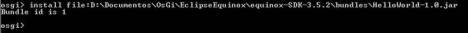 osgi> install file:D:DocumentosOsGiEclipseEquinoxequinox-SDK-3.5.2bundlesHelloWorld-1.0.jar