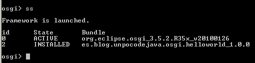 Que al ejecutarlo nos muestra una consola OSGi desde la que prodremos instalar nuestros módulos OSGi:
