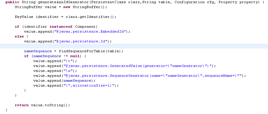 El ejemplo expuesto modifica una plantilla para llamar a la clase Helper, y poder generar de forma correcta el uso de una determinada secuencia (en este caso de Oracle) para la clave primaria de una entidad.