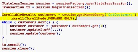 3) Hibernate ofrece un API StatelessSession que trabaja con objetos detached y que no actúa con ninguna caché. No incluye transaccionalidad, ni chequeos. Se usa: