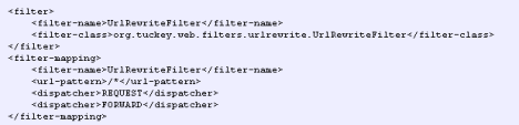 Añadir los filtros en WEB-INF/urlrewrite.xml (por defecto o configurable en web)