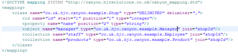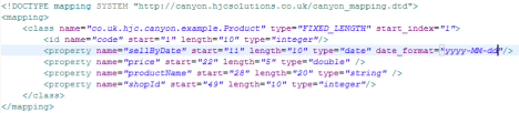 Es interesante ver lo sencillo que resulta decir como se mapea una clase a un fichero: