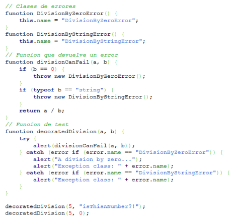 Todos los que estamos acostumbrados a trabajar con Java, solemos tratar y lanzar excepciones de forma habitual para controlar los errores. En Javascript no es algo normal, pero podría ser útil.