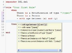 – Crear DSLs (nuevo lenguaje de reglas) enfocado al negocio concreto: soportando esta sintáxis con autocompletado: