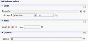 – Definir visualmente las reglas (.drl):