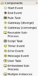 Ofrece los nodos típicos de un BPM,