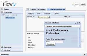 Flow ofrece una aplicación web (GWT) en la que pueden visualizarse el estado de los procesos,