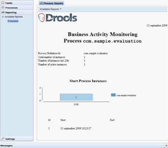 Flow también tiene un BAM que permite construir informes mediante BIRT para visualizar los KPIs definidos en las reglas y en el flujo