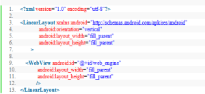 En el fichero main.xml se declara el Widget como elemento hijo del elemento LinearLayout, con sus propiedades correspondientes (en este caso se utilizará el alto y ancho de la pantalla). Básicamente se define su layout.