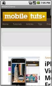 Para cargar la url de la página web, se añadirá el siguiente código en el método onCreate() del main de la actividad (com.webkitdemo.WebKitDemo en este caso)
