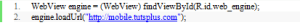 Mediante este código, el Widget invoca al método loadUrl() mostrando la página Web referenciada.