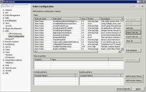 Además de en Rule Set en las propiedades del proyecto se pueden configurar las reglas que deseamos aplicar al proyecto: