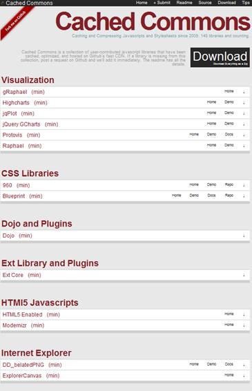En Cached Commons se puede encontrar multitud de librerías javascript y hojas de estilo gratuitas. Han sido cacheadas y alojadas en el CDN de Github lo que permite añadirlas directamente al proyecto.