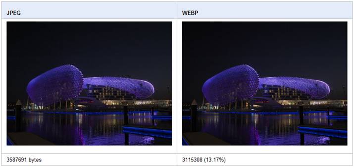 Para el desarrollo del formato WebP se ha utilizado el códec VP8 que Google liberó hace poco tiempo. A modo de comparación, también se creó una galería en la que se puede observar que, en el peor de los casos, el formato WebP puede crear imágenes un diez por ciento más pequeñas que el mismo ejemplar en JPG, manteniendo la misma calidad.