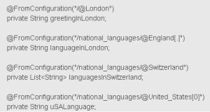 Es muy interesante el uso con anotaciones (http://www.obix-labs.com/wiki/bin/view/XConfig/SpringExamplesHelloWorld)