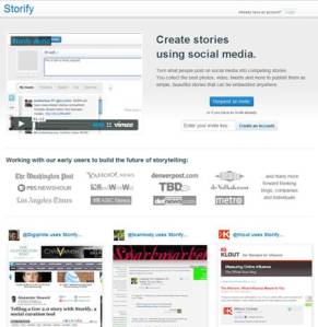 La principal función de Storify es crear historias o artículos a partir de los diferentes recursos sociales de los que se dispone. Así, recogiendo partes de fuentes como Twitter, Facebook, Flickr, YouTube o incluso de Google se puede crear la información. En estos momentos el servicio está en beta cerrada. El proceso es muy sencillo: basta con arrastrar módulos de información de las fuentes mencionadas anteriormente, añadir comentarios propios en forma de texto y hacer esa compilación visible para todo el mundo.