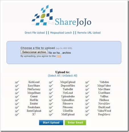 ShareJojo es un servicio web que permite subir un mismo fichero a múltiples servidores a la misma vez.