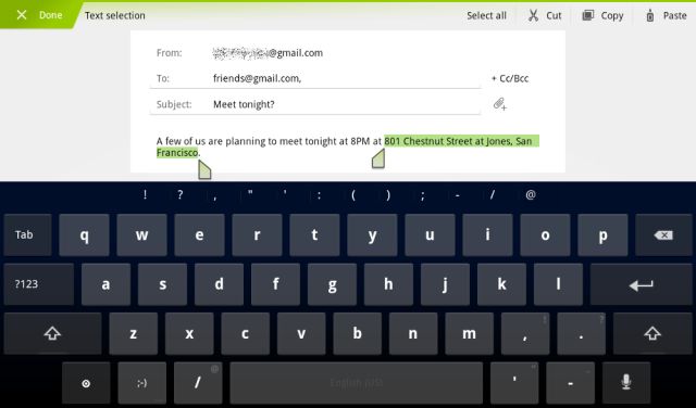 La forma de utilizar el teclado es similar a la del Gingerbread(versión 2.3), con funcionalidades muy mejoradas a la hora de seleccionar y realizar operaciones con texto como copiar y pegar.