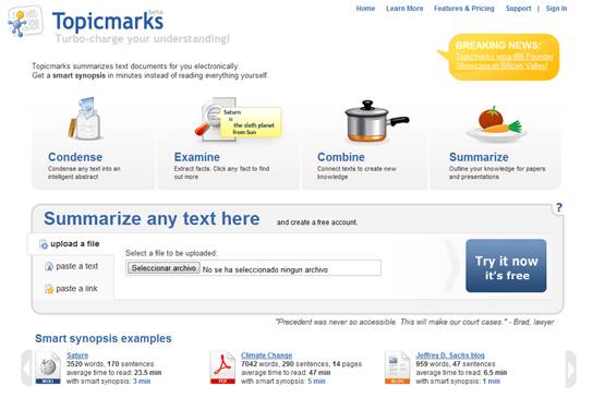 Topicmarks es un proyecto que se encamina en la misma dirección que el buscador Wolfram Alpha o el proyecto Metaweb, la comprensión de nuestro lenguaje natural.