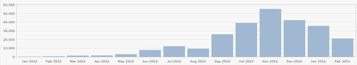 En cuanto a visitas parece que no hemos empezado bien el año 2011…puede ser que nos hayamos estabilizado, o eso o que hay pocas noticias de Google 😀