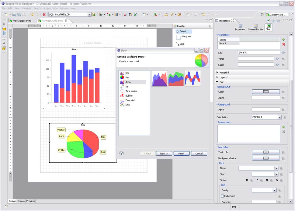 JaspweWave Report Desiegner es un plugin de Eclipse que permite crear informes de forma sencilla.