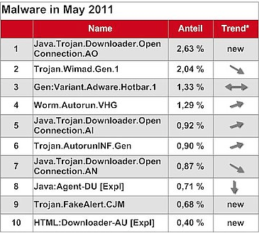 En el último informe de G-Data sobre las brechas de seguridad del mes de Mayo, los plugins no actualizados de los navegadores y sobre todo el malware, centra su atención en Java. Cuatro de las diez amenazas más repetidas en el último mes estaban orientadas a explotar agujeros de seguridad de Java para los que existían parches disponibles desde el mes de Marzo de 2010.
