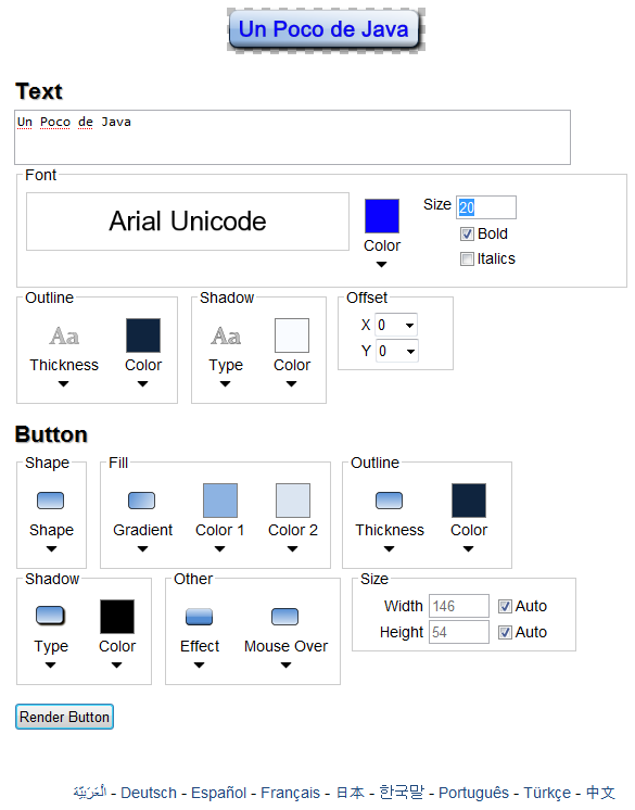 Me ha resultado útil el creador de Botones capaz de renderizar un botón eligiendo un texto, fuente (de un catálogo de 1200) y efectos.