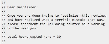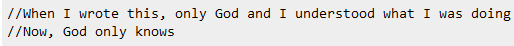 Bajo este título What is the best comment in source code you have ever encountered? se encuentran un buen número de comentarios de esos que se ponen a altas horas de la madrugada.