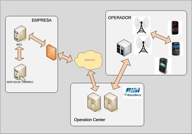 Blackberry (a diferencia de otros móviles) ofrece los servicios a través de sus propios servidores, controlando el tráfico y añadiendo por ejemplo seguridad en las comunicaciones.