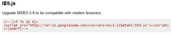 ie7.js es una librería JavaScript que hace a IE6 comportarse como un Internet Explorer 7, lo que permite por ejemplo poder usar position:fixed en el CSS, usar las propiedades CSS max-height, min-height, max-width y min-width,…