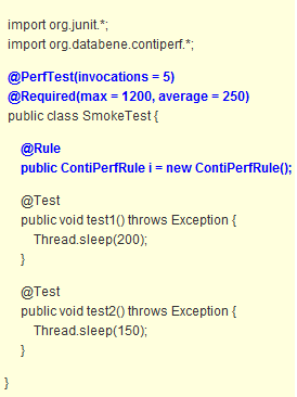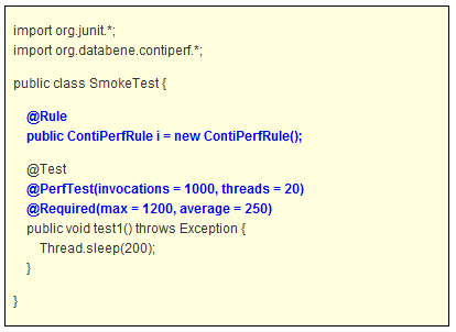 Definiendo un atributo de tipo ContiPerfRule con la anotación @Rule se activa ContiPerf.