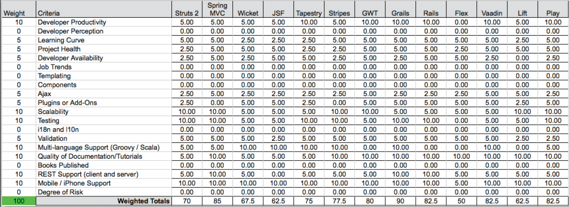Si además le damos un peso a cada uno de los criterios (por ejemplo no le damos importancia al número de libros publicados) tenemos:
