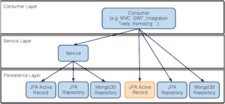 · Cambio Modelo Capa Persistencia: hasta ahora se usaba un modelo de dominio rico (Active Record) en el que las entidades permitían realizar las operaciones de persistencia. Ahora se soporta el uso de JPA Repository y JPA Active Record.