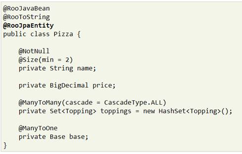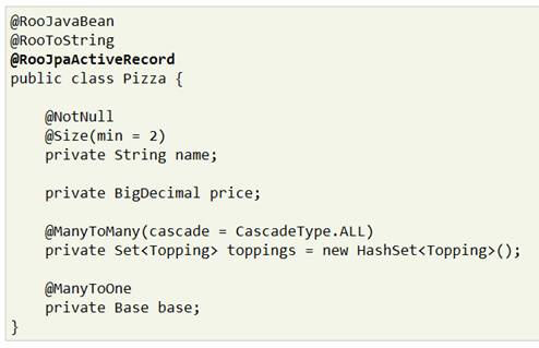 roo> entity jpa –class ~.domain.Pizza –activeRecord false