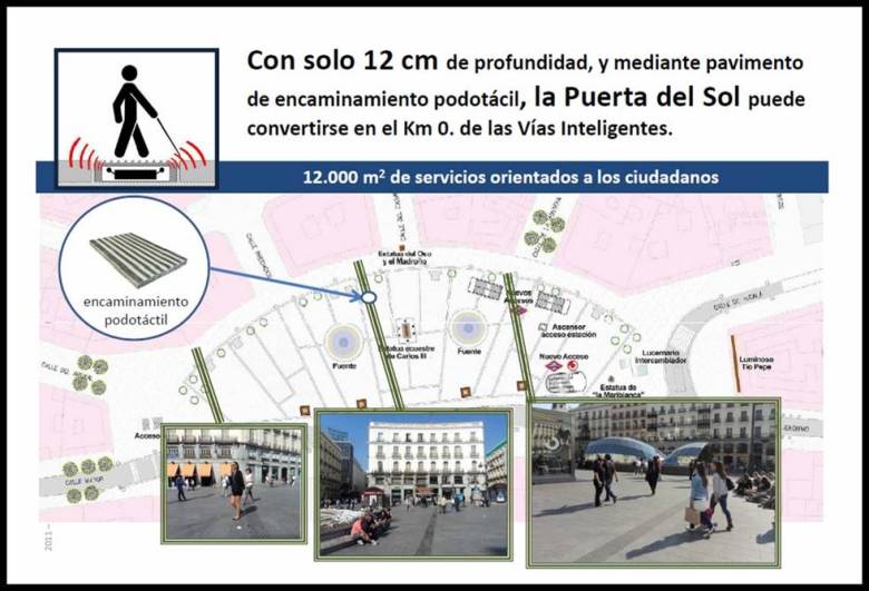 Gracias a esta innovadora tecnología integrada en el pavimento los transeúntes de la Puerta del Sol podrán descargar información turística y comercial de la zona, mediante Wifi y mensajes Bluetooth directamente a sus móviles y tablets.
