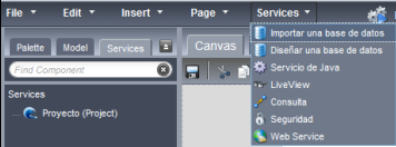 o Services: muestra servicios (base de datos, Web Services, Java, Seguridad,…) y componentes no visuales.