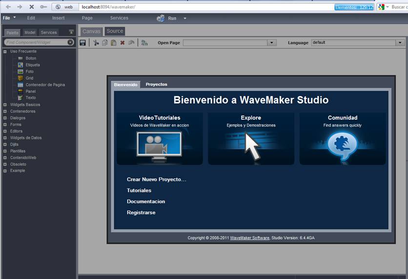 Pincho sobre Start, se abrirá un navegador a la url: http://localhost:8094/wavemaker/
