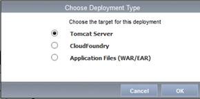 Donde Tomcat Server es el Tomcat incluido en WaveMaker, CloudFoundry la propuesta Cloud de VMWare e incluso podemos generar un WAR para desplegar en otro contenedor.